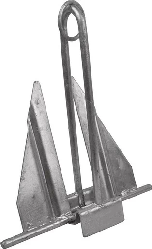 - The assembly is arc-welded steel that maintains consistent fluke-to-shank angles, ensuring quick penetration and a firm hold.