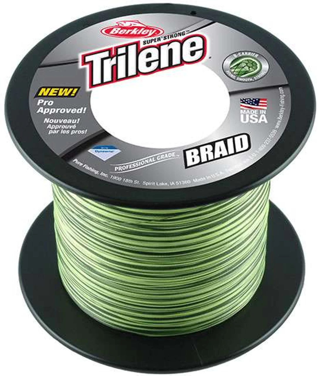 Berkley Trilene Tracer Braid Professional Grade has been field-tested and approved by the Berkley Pro Staff. The strongest Berkley braid ever, Trilene Braid features Dyneema fibers in a special Radial Braid construction. This construction has an optimum blend of pick count and 8 carriers to create a weave that is ultra-round, smooth and strong. A special coating technology holds its color longer and results (with the construction) in a smoother, quieter surface that slips through the guides and casts farther.