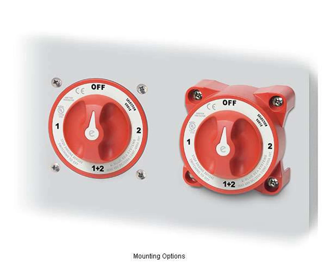 The Blue Sea 9003e e-Series On Off Battery Switch switches a single battery to a single load group.