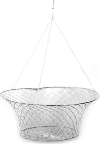 The Eagle Claw 10060 Double Ring Cotton Crab Net features an 18 inch upper ring and an 11 inch lower ring.