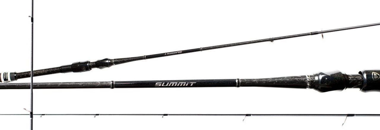 The Favorite Summit Spinning Rods represent the pinnacle of fishing rod technology with design features that make it the first of its kind. There is simply nothing else like it on the market outside of the Favorite lineup. The Summit is the first rod to feature a solid one piece construction from top to bottom. Conventional rod designs utilize a separate blank, handle, and reel seat, but this is not the case with the Summit due to the implementation of iGrip Technology. The essence of iGrip technology is that the grip and blank are formed as a single unit, resulting in unprecedented weight reduction and sensitivity. Thanks to Favorite’s Graphite and Kevlar Cloth Technology, the Summit holds the record for the lightest weight series of rods in the business. At its core is a Japanese made 46-ton Toray blank constructed with Favorite’s Multi Layer Structure technology. These blanks are produced from a layering process where carbon of different modulus and different fiber directions are strategically layered on top of one another to achieve the desired rod action, increase durability, and lower weight. The blank is then wrapped in an 8-directional grid of high modulus carbon which Favorite has coined its “Octa Core Grid” technology, making this thin, feather-light blank stiffer and strong enough to handle any challenge. Last but not least, the Summit is fitted with premium titanium framed Fuji K-R Concept guides with Torzite inserts for unparalleled casting distance and accuracy. Thanks to Favorite, the future is now for fishing rod technology, and if it’s not a Summit, it’s simply out dated!