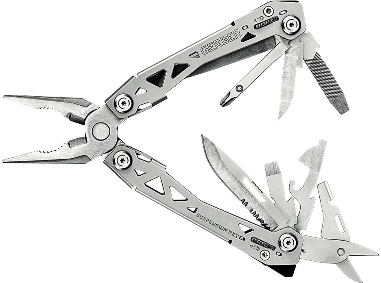 The Gerber Suspension-NXT Pocket Multi-Tool is the evolution of the classic Gerber multi-tool design. The slim butterfly design features outboard tools that are accessible in a snap when unexpected tasks come up. Boasting an increased tool count of 15 in a smart everyday carry package, it is equipped with a pocket clip that is easily carried on a belt or in a pocket.