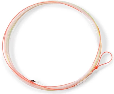 The Orvis Tactical Nymph Leader uses color to allow the angler to see and follow the leader when nymphing. 12” of bright orange butt section, with a perfection loop for easy connection to fly line, changes to an opaque white. The last 2′ of the leader is multi-color – 8” of orange, 8” of chartreuse, and 8” of white. The bottom is finished with a 2mm tippet ring which allows easy addition of desired tippet. The leader is knotless for convenience.