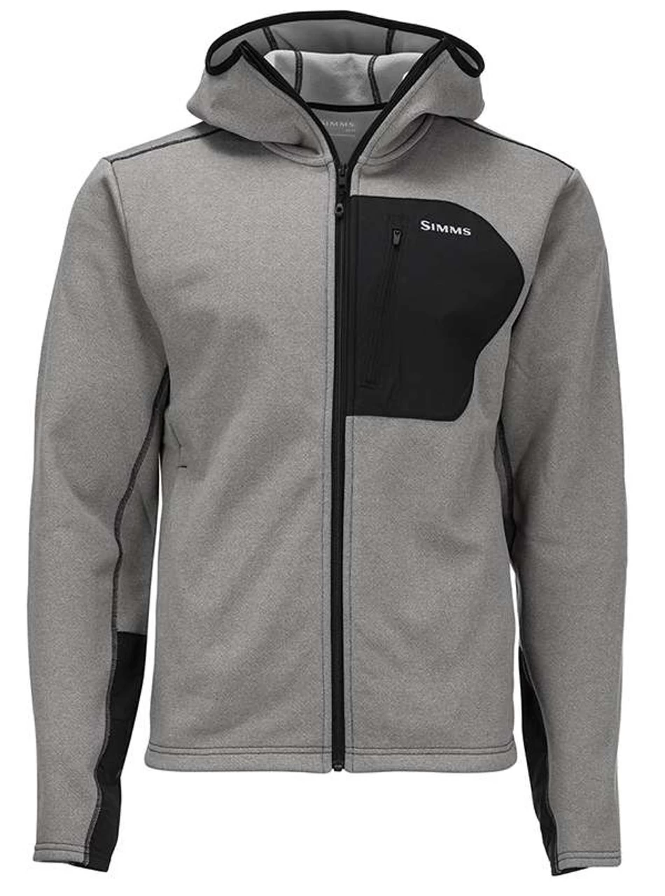 The Simms CX Hoody is the perfect sweatshirt to grab on your way to the fishing grounds or the docks during cold seasons. This full front zip hoody features an athletic fit. Meant to keep you warm all around from your head to your hands with a hood and handwarmer pockets. Store some of your smaller gear with a zippered small woven chest pocket.