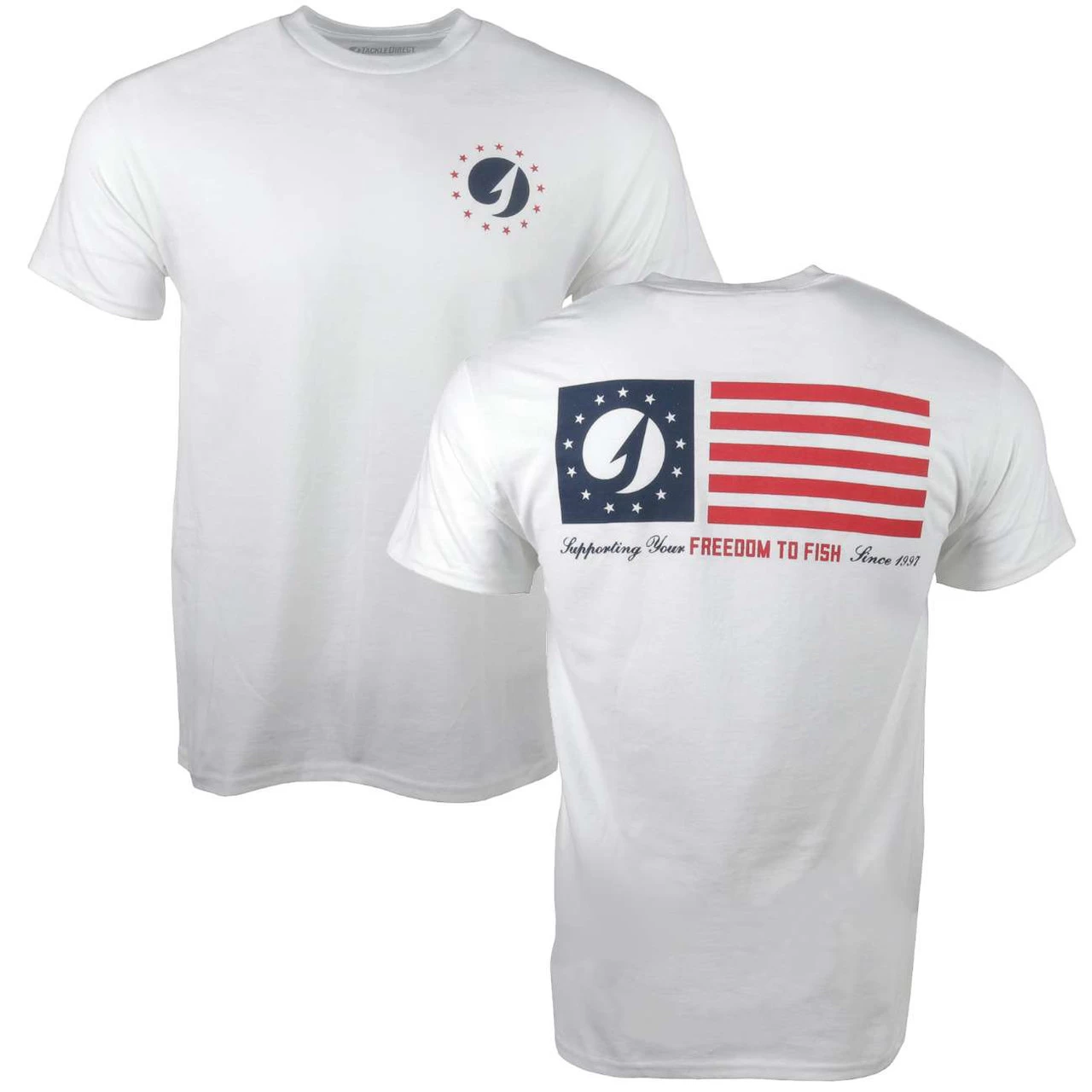 The TackleDirect Freedom T-Shirts represent the establishment of TackleDirect with the freedom to fish since 1997. A comfortable short sleeve, 6oz 100% cotton t-shirt with taped shoulders and neck. Featuring a tear away label and a regular fit for comfort. Show your patriotism and support with our Freedom to Fish T-shirt, TackleDirect has been working hard to support anglers around the world for over 25 years, but it all started here in the USA.